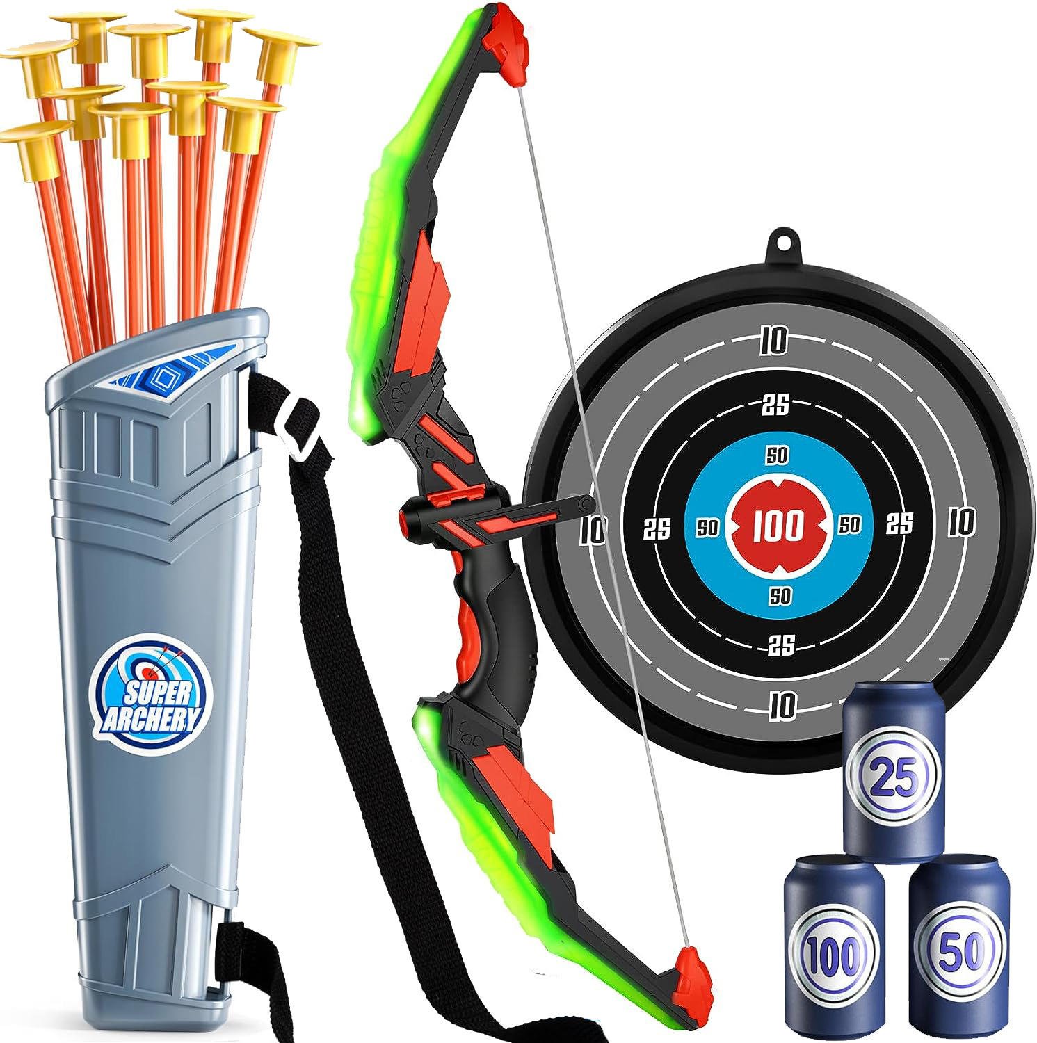 Children’s sports shooting toy bow and arrow set with lighting effects. Safe and fun outdoor toy that helps improve focus, coordination, and active play for boys.